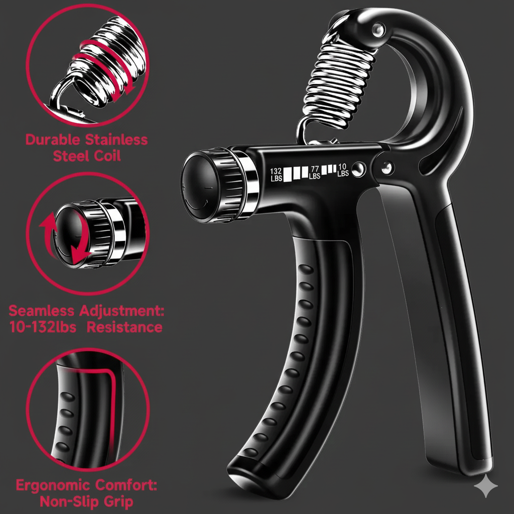 Der Handtrainer lässt sich von 5 bis 60 kg einstellen – ideal für jedes Fitnesslevel. Der integrierte Zähler hilft dir, Fortschritte sichtbar zu machen.